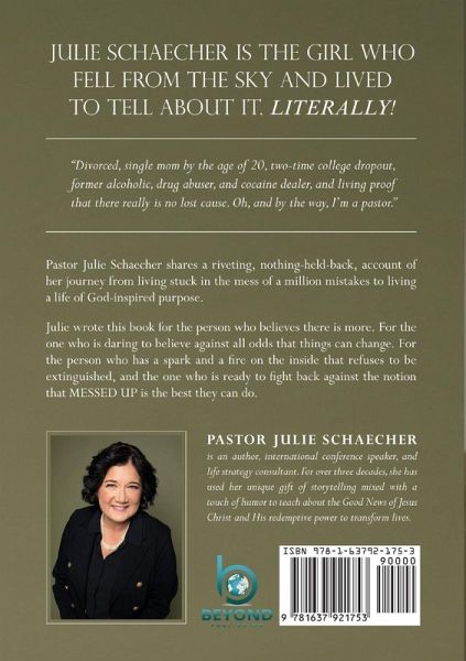 GOD HAS NOT CHANGED HIS MIND ABOUT YOU! Something in your life is messed up and you feel powerless to change it. Maybe the mess is all your fault and you've never been able to say it to anyone. No problem here! This book is written for the person who has gotten lost on their life journey The person who is afraid their mistakes have messed things up for good The person who knows there is more to life than what they are experiencing Anyone who has at least one messy person in their life Pastor Julie Schaecher, author and conference speaker boldly shares a riveting, nothing held back account of her journey from an absolutely messed-up life to one of God-inspired purpose. It will dare you to believe that God has not changed His mind about you and guide you through the steps of finding your forward into the life that He planned for you before you ever had a chance to mess it up!