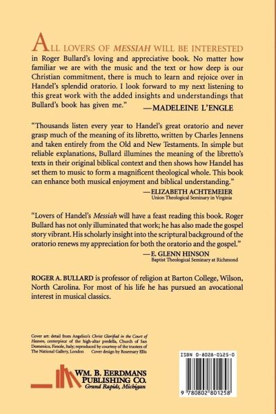 This is a print on demand book and is therefore non- returnable. This fascinating, informed guide to Handel's Messiah shows how the oratorio's text constitutes a magnificent theological statement in artistic form. Taking the fifty-three sections of the score in sequence, Roger Bullard explains each part of the oratorio text in terms of (1) how the language differs from the King James Version of the Bible or the Book of Common Prayer, (2) what the passage of Scripture meant in its original context and how it contributes to the Christian message, and (3) how the citation fits in the artistic and religious structure of the oratorio as a whole. Bullard's guidebook will help performers and listeners alike to appreciate Handel's choral masterpiece even more.