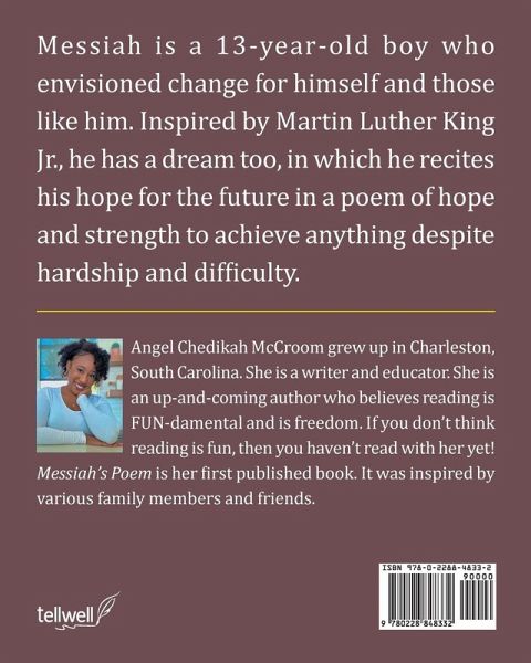 Angel Chedikah McCroom grew up in Charleston, South Carolina. She is a writer and educator. She is an up-and-coming author who believes reading is FUN-damental and is freedom. If you don't think reading is fun, then you haven't read with her yet! Messiah's Poem is her first published book. It was inspired by various family members and friends.