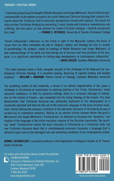 Relying on the core, messianic affinity that binds Christianity and Judaism together, Zathureczky offers a reconstruction of the Christian doctrine of the Trinity through the messianic lens provided by the thought of Walter Benjamin. The work traces the contours of a Trinitarianism which does not stand aloof of an unredeemed world, a Trinitarian naming of God that transpires within the time of messianic remembrance.