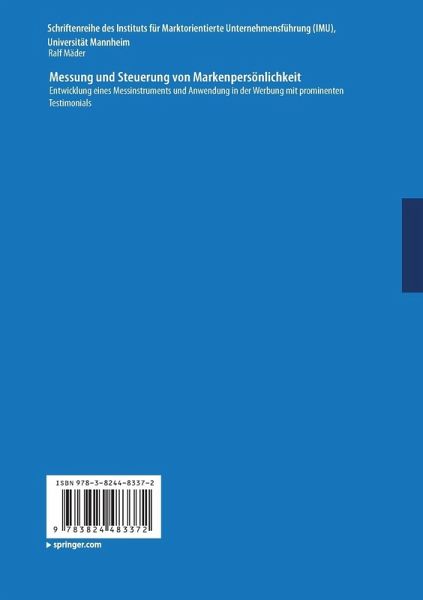 Ralf Mäder entwickelt ein Messinstrument zur Erfassung der Persönlichkeit von Konsumgütermarken in Deutschland und untersucht die Wirkung prominenter Testimonials auf die Markenpersönlichkeit. Er zeigt, unter welchen Bedingungen sich die Persönlichkeit einer Marke am stärksten mit einem Testimonial modifizieren lässt und wie die Einstellung zu einem Testimonial am besten auf die beworbene Marke übertragen werden kann.