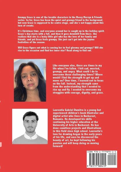 Grumpy Grace is one of the loveable characters in the Messy Marvyn & Friends series. So far, Grace has been the quiet and grumpy friend in the background, but now Grace is supposed to be centre stage, and she's not happy about this turn of events. It's Christmas time, and everyone around her is caught up in the holiday spirit. Grace's day starts with a fall, and then it goes downhill from there. She realizes that she is a lucky little girl who has the love of her family and friends, and yet Grace feels grumpy. She just can't get into the joyous festivities of the season. Will Grace figure out what is causing her to feel gloomy and grumpy? Will she rise to the occasion and find her inner star? Read along to find out.