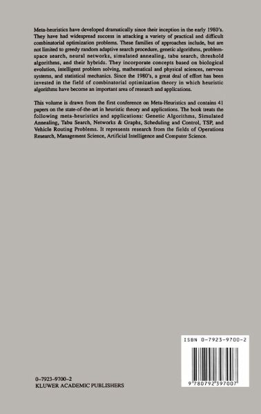 This volume is drawn from the first conference on Meta-Heuristics and contains 41 papers on the state-of-the-art in heuristic theory and applications. The book treats the following meta-heuristics and applications: Genetic Algorithms, Simulated Annealing, Tabu Search, Networks & Graphs, Scheduling and Control, TSP, and Vehicle Routing Problems. It represents research from the fields of Operations Research, Management Science, Artificial Intelligence and Computer Science.