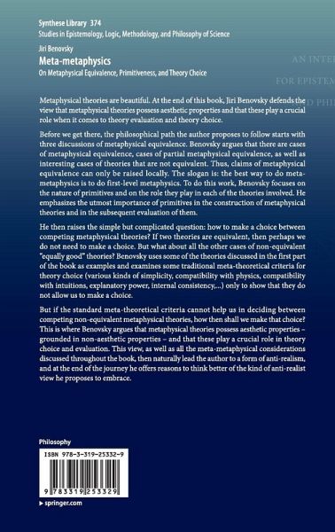 Metaphysical theories are beautiful. At the end of this book, Jiri Benovsky defends the view that metaphysical theories possess aesthetic properties and that these play a crucial role when it comes to theory evaluation and theory choice.Before we get there, the philosophical path the author proposes to follow starts with three discussions of metaphysical equivalence. Benovsky argues that there are cases of metaphysical equivalence, cases of partial metaphysical equivalence, as well as interesting cases of theories that are not equivalent. Thus, claims of metaphysical equivalence can only be raised locally. The slogan is: the best way to do meta-metaphysics is to do first-level metaphysics.To do this work, Benovsky focuses on the nature of primitives and on the role they play in each of the theories involved. He emphasizes the utmost importance of primitives in the construction of metaphysical theories and in the subsequent evaluation of them.He then raises the simple but complicated question: how to make a choice between competing metaphysical theories? If two theories are equivalent, then perhaps we do not need to make a choice. But what about all the other cases of non-equivalent "equally good" theories? Benovsky uses some of the theories discussed in the first part of the book as examples and examines some traditional meta-theoretical criteria for theory choice (various kinds of simplicity, compatibility with physics, compatibility with intuitions, explanatory power, internal consistency,...) only to show that they do not allow us to make a choice.But if the standard meta-theoretical criteria cannot help us in deciding between competing non-equivalent metaphysical theories, how then shall we make that choice? This is where Benovsky argues that metaphysical theories possess aesthetic properties - grounded in non-aesthetic properties - and that these play a crucial role in theory choice and evaluation. This view, as well as allthe meta-metaphysical considerations discussed throughout the book, then naturally lead the author to a form of anti-realism, and at the end of the journey he offers reasons to think better of the kind of anti-realist view he proposes to embrace.