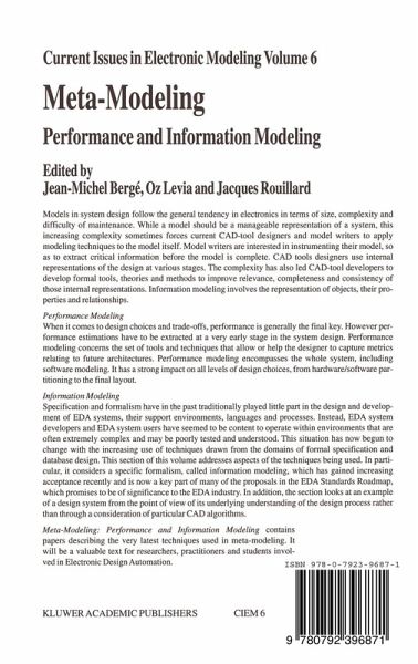 Meta-Modeling: Performance and Information Modeling contains papers describing the very latest techniques used in meta-modeling. It will be a valuable text for researchers, practitioners and students involved in Electronic Design Automation.