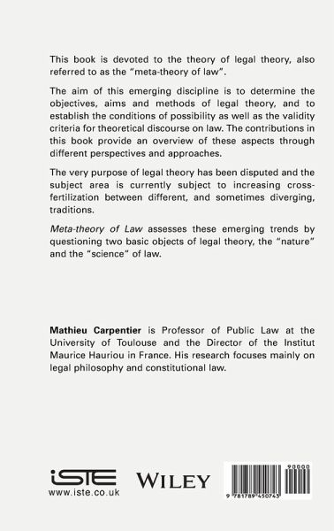 The aim of this emerging discipline is to determine the objectives, aims and methods of legal theory, and to establish the conditions of possibility as well as the validity criteria for theoretical discourse on law. The contributions in this book provide an overview of these aspects through different perspectives and approaches.