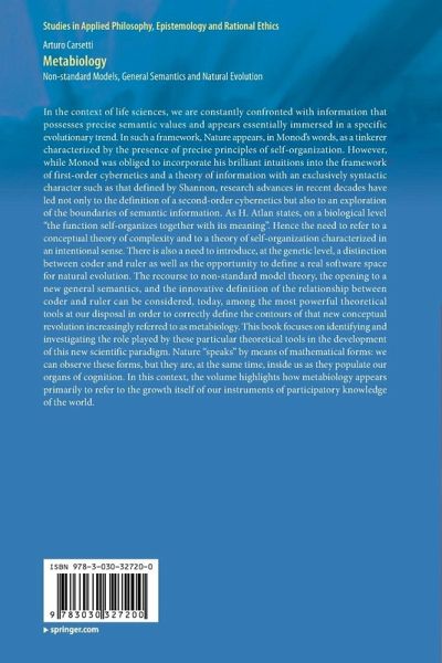 In the context of life sciences, we are constantly confronted with information that possesses precise semantic values and appears essentially immersed in a specific evolutionary trend. In such a framework, Nature appears, in Monod's words, as a tinkerer characterized by the presence of precise principles of self-organization. However, while Monod was obliged to incorporate his brilliant intuitions into the framework of first-order cybernetics and a theory of information with an exclusively syntactic character such as that defined by Shannon, research advances in recent decades have led not only to the definition of a second-order cybernetics but also to an exploration of the boundaries of semantic information. As H. Atlan states, on a biological level "the function self-organizes together with its meaning". Hence the need to refer to a conceptual theory of complexity and to a theory of self-organization characterized in an intentional sense. There is also a need to introduce,at the genetic level, a distinction between coder and ruler as well as the opportunity to define a real software space for natural evolution. The recourse to non-standard model theory, the opening to a new general semantics, and the innovative definition of the relationship between coder and ruler can be considered, today, among the most powerful theoretical tools at our disposal in order to correctly define the contours of that new conceptual revolution increasingly referred to as metabiology. This book focuses on identifying and investigating the role played by these particular theoretical tools in the development of this new scientific paradigm. Nature "speaks" by means of mathematical forms: we can observe these forms, but they are, at the same time, inside us as they populate our organs of cognition. In this context, the volume highlights how metabiology appears primarily to refer to the growth itself of our instruments of participatory knowledge of the world.