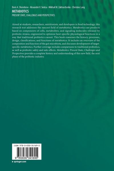 Ch 1: Introduction.- Ch 2: The composition and functions of the human gut symbiotic microbiota.- Ch 3: Contemporary views on biotechnological potential of symbiotic microorganisms.- Ch 4: The digestive function of human gut microbiota.- Ch 5: Metabolic relationship between the host and its gut microbiota.- Ch 6: Factors and agents that modify the composition and functions of symbiotic microbiota, diagnostic methods for microecological imbalance and its consequences.- Ch 7: Contemporary microecological strategies of gut microbiota modulating for human health preservation, restoration and improvement.- Ch 8: Molecular language of symbiotic gut microorganisms.- Ch 9: Drawbacks and negative consequences of traditional probiotics based on live microorganisms.- Ch 10: Metabiotics, New stage of the probiotic concept development.- Ch 11: Methods and techniques used for obtaining and identifying of microbial low molecular weight cellular compounds, metabolites and signaling molecules.- Ch 12: Classification of metabiotics and their brief description.- Ch 13: Some of the best-known metabiotics on the market of microecological market.- Ch 14: Cellular metabiotics and Metabolite metabiotics.- Ch 15: Prospects in the field of intended-use metabiotics creation.- Ch 16: Some new targets and approaches to the construction of intended-use metabiotics.- Ch 17: Conclusion.