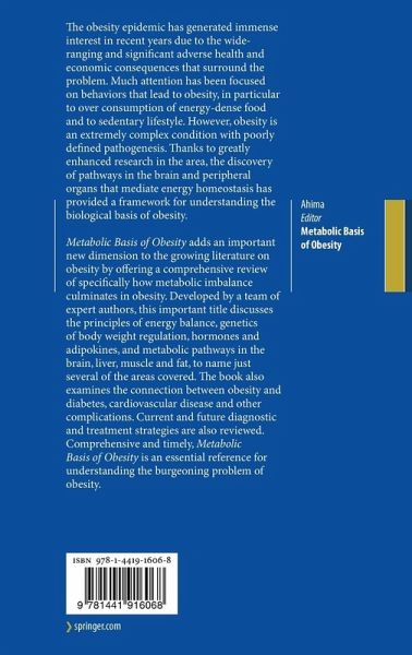 "This book presents in-depth reviews on a wide variety of topics related to the metabolic basis of obesity. ... The book is written for researchers, clinicians, students, and the public at large. ... it is most appropriate for researchers and clinicians who focus on patients with metabolic disorders. ... This is a great book on the metabolic basis of obesity. It is a fantastic place to start for researchers and clinicians who wish to obtain a deeper understanding of this timely and important area." (Ronald N. Cohen, Doody's Review Service, April, 2011)