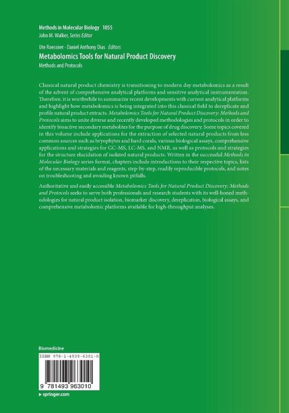 Authoritative and easily accessible Metabolomics Tools for Natural Product Discoveries: Methods and Protocols seeks to serve both professionals and research students with its well-honed methodologies for natural product isolation, biomarker discovery, dereplication, biological assays, and comprehensive metabolomic platforms available for high-throughputanalyses.