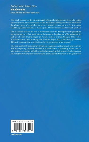 This is an ideal book for university professors, researchers, and advanced-level scientists who are exploring different avenues in metabolomics. Availability of this concise information in one place will aid scientists by expanding theirarsenal of techniques and can be helpful to bring more collaborations and to identify the expert at the global level.
