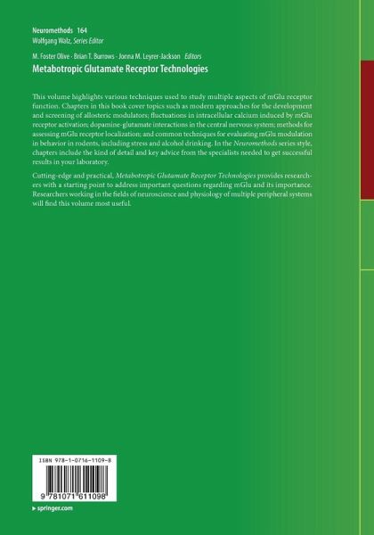 Cutting-edge and practical, Metabotropic Glutamate Receptor Technologies provides researchers with a starting point to address important questions regarding mGlu and its importance. Researchers working in the fields of neuroscience and physiology of multiple peripheral systems will find this volume most useful.