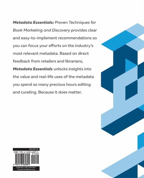 ". . . An essential, unique, and thoroughly 'user friendly' instructional reference and guide that should be an integral part of every author and every publisher's professional book marketing plan instructional reference collection." - Midwest Book Review Metadata Essentials: Proven Techniques for Book Marketing and Discovery provides clear and easy-to-implement recommendations so you can focus your efforts on the industry's most relevant metadata.