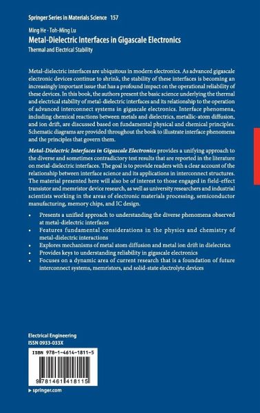 Metal-dielectric interfaces are ubiquitous in modern electronics. As advanced gigascale electronic devices continue to shrink, the stability of these interfaces is becoming an increasingly important issue that has a profound impact on the operational reliability of these devices. In this book, the authors present the basic science underlying the thermal and electrical stability of metal-dielectric interfaces and its relationship to the operation of advanced interconnect systems in gigascale electronics. Interface phenomena, including chemical reactions between metals and dielectrics, metallic-atom diffusion, and ion drift, are discussed based on fundamental physical and chemical principles. Schematic diagrams are provided throughout the book to illustrate interface phenomena and the principles that govern them.