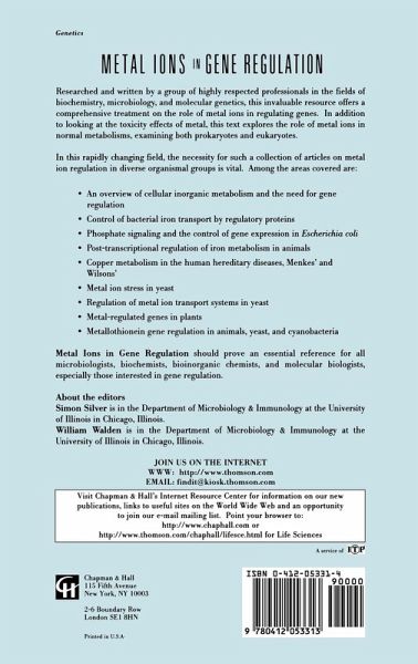 This is the first volume on the role of metal ions in regulating genes to focus not only on toxicity effects of metals but also on the role of metal ions in normal metabolisms, in both prokaryotes and in eukaryotes. This book is a comprehensive treatment of the role of metal ions in gene regulation, and it will be of great utility for those doing basic biological and biomedical research.