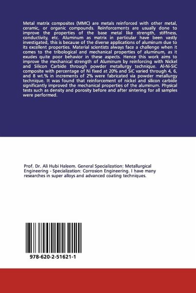 Metal matrix composites (MMC) are metals reinforced with other metal, ceramic, or organic compounds. Reinforcements are usually done to improve the properties of the base metal like strength, stiffness, conductivity, etc. Aluminum as matrix in particular have been vastly investigated, this is because of the diverse applications of aluminum due to its excellent properties. Material scientists always face a challenge when it comes to the tribological and mechanical properties of aluminum, as it exudes quite poor behavior in these aspects. Hence this work aims to improve the mechanical strength of Aluminum by reinforcing with Nickel and Silicon Carbide through powder metallurgy technique. Al-Ni-SiC composite with percentage of Ni fixed at 20% and SiC varied through 4, 6, and 8 wt.% in increments of 2% were fabricated via powder metallurgy technique. It was found that reinforcement of nickel and silicon carbide significantly improved the mechanical properties of the aluminum. Physical tests such as density and porosity before and after sintering for all samples were performed.