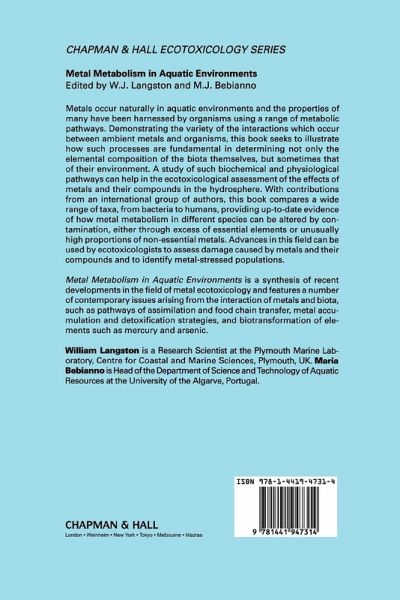 Metal Metabolism in Aquatic Environments is a synthesis of recent developments in the field of metal ecotoxicology and features a number of contemporary issues arising from the interaction of metals and biota, such as pathways of assimilation and food chain transfer, metal accumulation and detoxification in humans and biotransformation of elements such as mercury and arsenic.