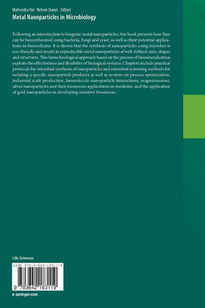 Following an introduction to biogenic metal nanoparticles, this book presents how they can be biosynthesized using bacteria, fungi and yeast, as well as their potential applications in biomedicine. It is shown that the synthesis of nanoparticles using microbes is eco-friendly and results in reproducible metal nanoparticles of well-defined sizes, shapes and structures. This biotechnological approach based on the process of biomineralization exploits the effectiveness and flexibility of biological systems. Chapters include practical protocols for microbial synthesis of nanoparticles and microbial screening methods for isolating a specific nanoparticle producer as well as reviews on process optimization, industrial scale production, biomolecule-nanoparticle interactions, magnetosomes, silver nanoparticles and their numerous applications in medicine, and the application of gold nanoparticles in developing sensitive biosensors.