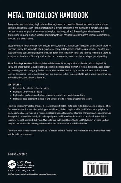 This book covers toxic metals individually discussing their redox biology and cytotoxicity, toxicological aspects on animals and humans, disease manifestations and threshold, organ specific damage, and molecular toxicology including mechanistic insight. It also discusses appropriate doses for beneficial micronutrients or essential trace elements.