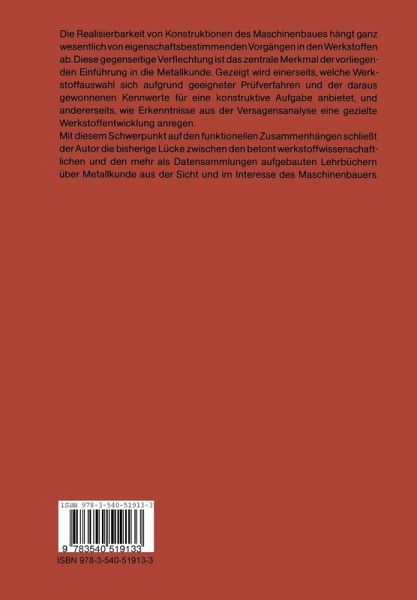 Aus den Besprechungen: "... die Lücke schließen zwischen einer reinen Stoffkunde und dem Verständnis des Werkstoffs als Medium zur Verwirklichung ingenieurmäßiger Überlegungen und Ideen. Der Autor spannt den Inhaltsbogen von den Eigenschaften und Eigenschaftskennwerten metallischer Werkstoffe über die Morphologie, den atomaren Aufbau und die Werkstoffstruktur bis hin zum Gefüge und dessen Neubildung. Wegen des engen Zusammenhangs zwischen Gefüge und Eigenschaften eines Werkstoffs wird dieser Punkt ausführlich behandelt. Das Buch ist handwerklich gut gemacht und verständlich geschrieben. Ein umfangreiches Schrifttumsverzeichnis sowie ein ausführliches Stichwortregister ergänzen die Informationen." Maschinenmarkt#1 "In diesem Lehrbuch wird am metallischen Werkstoff gezeigt, wie Struktur und Gefüge mit den Festkörperreaktionen unter verschiedenartigen äußeren Beanspruchungen und damit den Eigenschaften des Werkstoffs in Beziehung stehen..." Metall#2