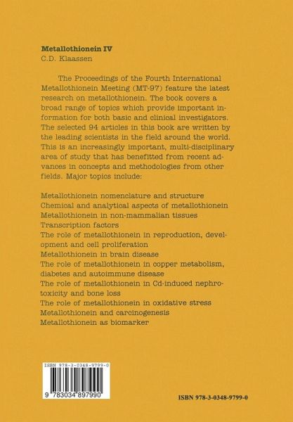 The Proceedings of the Fourth International Metallothionein Meeting (MT-97) feature the latest research on metallothionein. The book covers a broad range of topics which provide important information for both basic and clinical investigators. The selected 94 articles in this book are written by the leading scientists in the field around the world. This is an increasingly important, multi-disciplinary area of study that has benefitted from recent advances in concepts and methodologies from other fields.