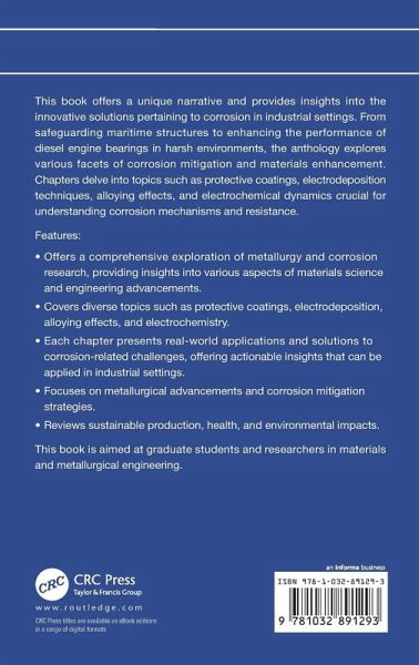 This book offers a unique narrative and provides insights into the innovative solutions pertaining to corrosion in industrial settings. From safeguarding maritime structures to enhancing the performance of diesel engine bearings in harsh environments, the anthology explores various facets of corrosion mitigation and materials enhancement. Chapters delve into topics such as protective coatings, electrodeposition techniques, alloying effects, and electrochemical dynamics crucial for understanding corrosion mechanisms and resistance.