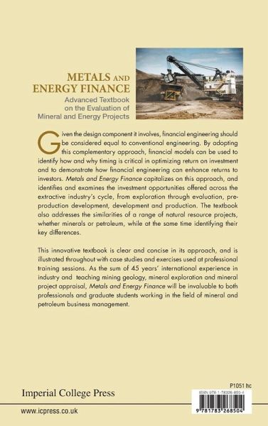 Given the design component it involves, financial engineering should be considered equal to conventional engineering. By adopting this complementary approach, financial models can be used to identify how and why timing is critical in optimizing return on investment and to demonstrate how financial engineering can enhance returns to investors. Metals and Energy Finance capitalizes on this approach, and identifies and examines the investment opportunities offered across the extractive industry's cycle, from exploration through evaluation, pre-production development, development and production. The textbook also addresses the similarities of a range of natural resource projects, whether minerals or petroleum, while at the same time identifying their key differences. This innovative textbook is clear and concise in its approach, and is illustrated throughout with case studies and exercises used at professional training sessions. As the sum of 45 years' international experience in industry and teaching mining geology, mineral exploration and mineral project appraisal, Metals and Energy Finance will be invaluable to both professionals and graduate students working in the field of mineral and petroleum business management.