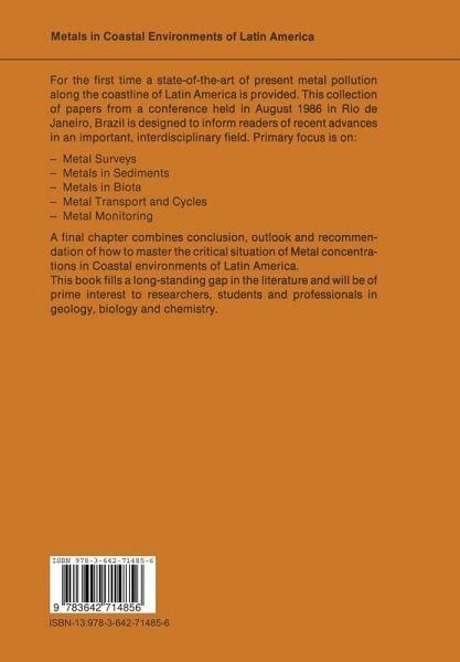 Metal Surveys.- Heavy Metal Surveys in Brazilian Coastal Environments.- Heavy Metals in Water and Sediments of the Blanca Bay, Argentina.- A Preliminary Survey of Heavy Metal Concentrations in some Estuarine Organisms in the Littoral Zone of São Luis Island, Maranhão, Brazil.- Study of Heavy Metal Pollution in the Tributary Rivers of the Jacarepagua Lagoon, Rio de Janeiro State, Brazil, Through Sediment Analysis.- Spatial Distribution of Heavy Metals in Seawater and Sediments from Coastal Areas of the Southeastern Buenos Aires Province, Argentina.- Metals in Sediments.- A Geochemical and Statistical Approach for Assessing Metal Pollution in Coastal Sediments.- Trace Metal Distribution in Sediments of the Patos Lagoon Estuary, Brazil.- Atmospheric Lead Deposition into Guarapina Lagoon, Rio de Janeiro State, Brazil.- Metal Ion Concentration in Sediments from Hellshire, a Jamaican Coastal Environment.- Geochemical Distribution of Cd, Cu, Cr and Pb in Sediments of Estuarine Areas along the Southeastern Brazilian Coast.- Behaviour of Pollutant Metals in Aquatic Sediments.- Metals in Biota.- Fate of Metals in Biota and Biological Interactions in the Tropical Coastal Zone.- Total Mercury Levels in Marine Organisms of the Bahia Blanca Estuarine Trophic Web.- Uptake of Zn and Cd by Coastal Phytoplankton Species in Culture.- Total Mercury, Cadmium and Lead Distribution in Tissues of the Southern Sea Lion (Otaria flavescens) in the Ecosystem of Mar del Plata, Argentina.- Laboratory Experiments on 60Co Bioaccumulation by Tropical Seaweeds.- Metal Transport and Cycles.- Behaviour and Impact Assessment of Heavy Metals in Estuarine and Coastal Zones.- Metal Cycles in Coastal Environments.- Mineralogical Control of Heavy Metal Behaviour in Coastal Environments: Copper in Ribeira Bay,Rio de Janeiro, Brazil.- Technetium in Coastal Environments: Field Observations and Laboratory Experiments.- Metal Monitoring.- Metal Monitoring in Coastal Environments.- Multispecies Metal Monitoring in Tropical Brazilian Estuaries.- Selected Bivalves for Monitoring of Heavy Metal Contamination in the Colombian Caribbean.- Eichhornia crassipes as a Biological Monitor of Heavy Metals in Surface Waters.- Strategies for Biological Monitoring: The European Experience.- Conclusions and Outlook.- Metals in Coastal Environments of Latin America: Recommendations for a Critical Situation.