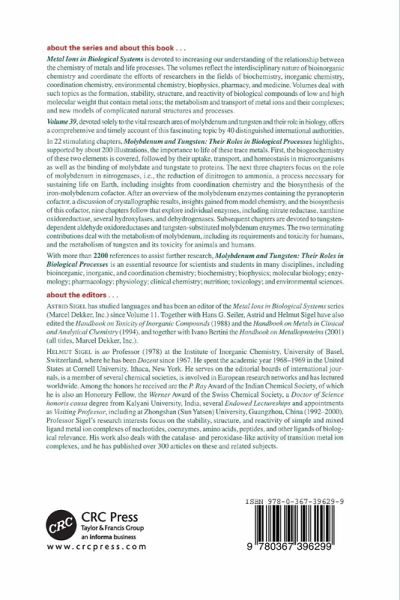 Volume 39: Molybdenum and Tungsten: Their Roles in Biological Processes is devoted soley to the vital research area on molybdenum and tungsten and their role in biology. It offers a comprehensive and timely account of this fascinating topic by 40 distinguished international authorities. Topics include: transport, homeostasis, regulation and binding of molybdate and tungstate to proteins, crystallographic characterization, coordination of complexes, and biosynthesis.