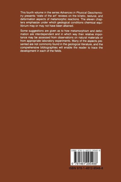 The fourth volume in this series consists of eleven chapters. The first five deal with more theoretical aspects of the kinetics and mechanisms of meta morphic reactions, and the next six consider the interdependence of defor mation and metamorphism. All papers deal with natural processes that inter act on various time scales and with different degrees of mass and heat transfer. Consequently, many fundamental axioms of metamorphic petrol ogy and structural geology are questioned both for their accuracy and their usefulness. In raising such questions, most contributors have pointed to ways in which the answers could be forthcoming from appropriate experi mental studies or observations on natural materials. In their discussion of how order/disorder can influence mineral assem blages, Carpenter and Putnis emphasize that metastable crystal growth is common in metamorphic systems and state' 'there may be some reluctance (among many earth scientists) to accept that significant departures from equilibrium could occur." On the basis of presented evidence, they question whether reactions ever occur close to an equilibrium boundary. The neces sity for pressure or temperature overstepping is also required by nucleation rate theory. In any case, the degree of order is severely influenced by these kinetic effects in igneous, sedimentary, and metamorphic environments.
