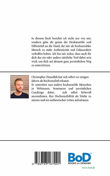 Christopher Hensellek wurde im Jahre 1983 geboren und hat sich selbst vor einigen Jahren als hochsensibel/hochsensitiv erkannt. Er beschäftigt sich seither ausgiebig mit den Themen Hochsensibilität, Persönlichkeitsentwicklung, Selbstwert, Selbstvertrauen, Selbstbewusstsein, Berufung, Gott, Glauben und Spiritualität. Nach einer abgeschlossenen Berufsausbildung zum Krankenpfleger arbeitete er zunächst einige Jahre in diesem Beruf, bevor er sich als Autor und Coach für hochsensible Menschen selbstständig machte. Diese beratende Tätigkeit ist in all den Jahren zu seiner Herzensangelegenheit geworden. Durch seine eigene Erfahrung und seinen Lebensweg geprägt, hilft er nun anderen hochsensiblen Menschen in Büchern, Webinaren, Seminaren und persönlichen Coachings dabei, ihr Leben ihren Bedürfnissen und Talenten entsprechend zu gestalten und anzupassen. Seine Aufgabe ist es, hochsensible Menschen auf ihrem ganz persönlichen Weg zu mehr Authentizität und Gelassenheit zu begleiten. Er unterstützt seine Klienten dabei, wieder zu innerer Stärke und Kraft zu finden, so dass sie ihre Hochsensibilität liebevoll akzeptieren und diesen Wesenszug positiv nutzen können.