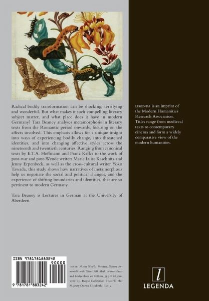 Radical bodily transformation can be shocking, terrifying and wonderful. But what makes it such compelling literary subject matter, and what place does it have in modern Germany? Tara Beaney analyses metamorphosis in literary texts from the Romantic period onwards, focusing on the affects involved. This emphasis allows for a unique insight into ways of experiencing bodily change, into threatened identities, and into changing affective styles across the nineteenth and twentieth centuries. Ranging from canonical texts by E.T.A. Hoffmann and Franz Kafka to the work of post-war and post-Wende writers Marie Luise Kaschnitz and Jenny Erpenbeck, as well as the cross-cultural writer Yoko Tawada, this study shows how narratives of metamorphosis help us negotiate the social and political changes, and the experience of shifting boundaries and identities, that are so pertinent to modern Germany. Tara Beaney is Lecturer in German at the University of Aberdeen.