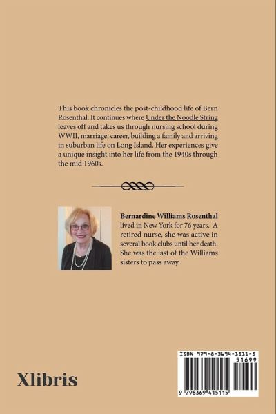 This book chronicles the post-childhood life of Bern Rosenthal. It continues where Under the Noodle String leaves off and takes us through nursing school during WWII, marriage, career, building a family and arriving in suburban life on Long Island. Her experiences give a unique insight into her life from the 1940s through the mid 1960s
