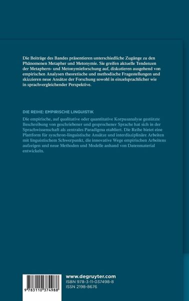 The contributions of this volumeexamine the phenomena of metaphor and metonymy from different perspectives. Theyadopt current tendencies in metaphor and metonymy research, discuss theoretical and methodological questions based on empirical analyses, and outline newapproaches in both single-languageand cross-linguisic research.
