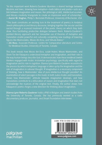 This book reveals how Moses ibn Ezra, Judah Halevi, Moses Maimonides, and Shem Tov ibn Falaquera understood metaphor and imagination, and their role in the way human beings describe God. It demonstrates how these medieval Jewish thinkers engaged with Arabic-Aristotelian psychology, specifically with regard to imagination and its role in cognition. Dianna Lynn Roberts-Zauderer reconstructs the process by which metaphoric language is taken up by the imagination and the role of imagination in rational thought. If imagination is a necessary component of thinking, how is Maimonides' idea of pure intellectual thought possible? An examination of select passages in the Guide, in both Judeo-Arabic and translation, shows how Maimonides' attitude towards imagination develops, and how translations contribute to a bifurcation of reason and imagination that does not acknowledge the nuances of the original text. Finally, the author shows how Falaquera's poetics forges a new direction for thinking about imagination.
