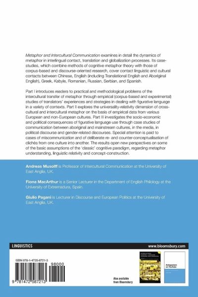 Metaphor and Intercultural Communication examines in detail the dynamics of metaphor in interlingual contact, translation and globalization processes. Its case-studies, which combine methods of cognitive metaphor theory with those of corpus-based and discourse-oriented research, cover contact linguistic and cultural contacts between Chinese, English including Translational English and Aboriginal English, Greek, Kabyle, Romanian, Russian, Serbian, and Spanish. Part I introduces readers to practical and methodological problems of the intercultural transfer of metaphor through empirical (corpus-based and experimental) studies of translators' experiences and strategies in dealing with figurative language in a variety of contexts. Part II explores the universality-relativity dimension of cross- and intercultural metaphor on the basis of empirical data from various European and non-European cultures. Part III investigates the socio-economic and political consequences of figurative language use through case studies of communication between aboriginal and mainstream cultures, in the media, in political discourse and gender-related discourses. Special attention is paid to cases of miscommunication and of deliberate re- and counter-conceptualisation of clichés from one culture into another. The results open new perspectives on some of the basic assumptions of the 'classic' cognitive paradigm, e.g. regarding metaphor understanding, linguistic relativity and concept-construction.