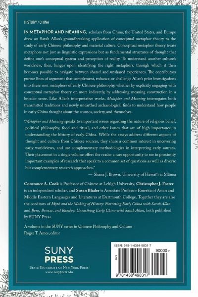 Examines questions of cosmos, society, and self through the metaphors and language of ancient Chinese texts and artifacts. In Metaphor and Meaning, scholars from China, the United States, and Europe draw on Sarah Allan's groundbreaking application of conceptual metaphor theory to the study of early Chinese philosophy and material culture. Conceptual metaphor theory treats metaphors not just as linguistic expressions but as fundamental structures of thought that define one's conceptual system and perception of reality. To understand another culture's worldview, then, hinges upon identifying the right metaphors, through which it then becomes possible to navigate between shared and unshared experiences. The contributors pursue lines of argument that complement, enhance, or challenge Allan's prior investigations into these root metaphors of early Chinese philosophy, whether by explicitly engaging with conceptual metaphor theory or, more indirectly, by addressing meaning construction in a broader sense. Like Allan's interpretative works, Metaphor and Meaning interrogates both transmitted traditions and newly unearthed archaeological finds to understand how people in early China thought about the cosmos, society, and themselves.