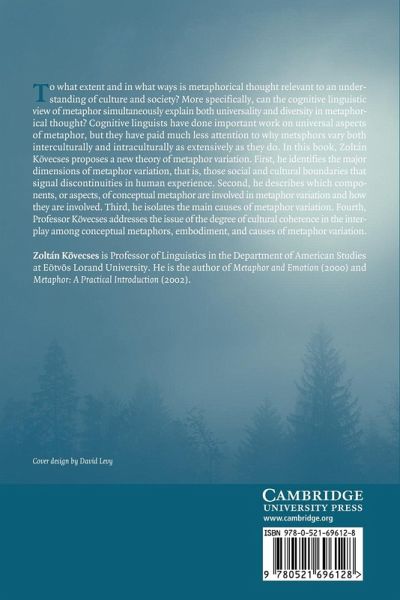 To what extent and in what ways is metaphorical thought relevant to an understanding of culture and society? More specifically: can the cognitive linguistic view of metaphor simultaneously explain both universality and diversity in metaphorical thought? Cognitive linguists have done important work on universal aspects of metaphor, but they have paid much less attention to why metaphors vary both interculturally and intraculturally as extensively as they do. In this book, Zoltan Kovecses proposes a new theory of metaphor variation. First, he identifies the major dimension of metaphor variation, that is, those social and cultural boundaries that signal discontinuities in human experience. Second, he describes which components, or aspects of conceptual metaphor are involved in metaphor variation, and how they are involved. Third, he isolates the main causes of metaphor variation. Fourth Professor Kovecses addresses the issue to the degree of cultural coherence in the interplay among conceptual metaphors, embodiment, and causes of metaphor variation.