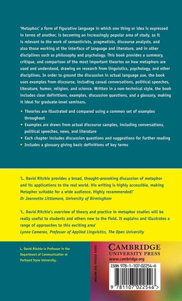 'Metaphor', a form of figurative language in which one thing or idea is expressed in terms of another, is becoming an increasingly popular area of study, as it is relevant to the work of semanticists, pragmatists, discourse analysts and also those working at the interface of language and literature and in other disciplines such as philosophy and psychology. This book provides a summary, critique and comparison of the most important theories on how metaphors are used and understood, drawing on research from linguistics, psychology and other disciplines. In order to ground the discussion in actual language use, the book uses examples from discourse, including casual conversations, political speeches, literature, humor, religion and science. Written in a non-technical style, the book includes clear definitions, examples, discussion questions and a glossary, making it ideal for graduate-level seminars.