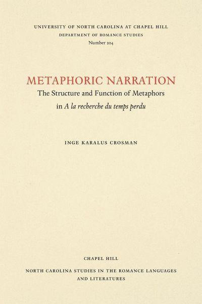 In this distinctive gem of Proustian criticism, Inge Karalus Crosman defines the function of metaphor within the text. Given the metaphoric saturation of Proust's textual construction, Crosman's key to a universal interpretation is narrowed to those metaphors that build up Proustian time itself. This book, well based in extant criticism, moves systematically through discussion of the most simple metaphors to the most complex and compound. Crosman's masterful analysis and deconstruction leads the reader to the double function of metaphor: the narrative and the cognitive.