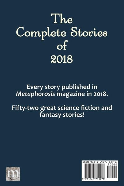 Beautifully written speculative fiction from Metaphorosis magazine. Fifty-two great science fiction and fantasy stories. All the stories we published in 2018. Contents From the Editor January The Seer at Sunset Hills Shopping Plaza - Katherine Perdue Jewel/Gem Offering - Emily McIntyre This Side of the Wall - Michael Gardner Memory is a Rumor - Yaroslav Barsukov February Love in its Heart - David Z. Morris Cheminagium - David Gallay Hold This Star for Me - Mark David Adam Hishi - David A. Gray March Always Dawn to Forever Night - Luke Elliott Any Old Disease - Dimitra Nikolaidou Velaya, the Dreaming City - Beston Barnett Switch - Lisa Clark The Three Sisters - K.D. Azariah-Kribbs April Bye Bye Skinny Cow - Hamilton Perez Cathedra - M.C. Tuggle The Cypress and the Rose - Sandi Leibowitz Koehl's Quality Impressions - Tim McDaniel May Calm Folk, Come Forth - Adan Berkowitz On the Scales of Dragons - Kathryn Yelinek Suzy's Friend - David Hammond Chasing the Light - Gloria Wickman June The Foaling Season - Samuel Chapman Nobody's Daughters and the Tree of Life - L'Erin Ogle Strangers in the Night - David Whitaker The Tapestry - A.C. Worth The Stars Don't Lie - R.W.W. Greene July Time's Arrow - C. Heidmann The Forest of New People - Thom Connors The Dream Diary of Monk Anchin - Felicity Drake It Feels Like Déjà Vu - Phong Quan August The Bagel Shop Owner's Nephew - J. Tynan Burke Upon the Fallen Leaves of the Gingko Tree - Mads Alvey Just a Fire - A. Martine All the Colors I Cannot See - L'Erin Ogle Not All Those Who Wander Are Lost - Douglas Anstruther September Graven Image - B. Morris Allen The Yarnball Woman - Michael Milne Familiar in Her Angles - E.A. Brenner Combustion - Kai Hudson October Reproduction in a Closed Loop - Andrew M LeBlanc Nana Naoko's Garden - Michael Gardner Twins - Gregory Kane The Astronaut Tier - Jonathan Laidlow November The Little G-d of ¿ód¿ - Evan Marcroft A House on the Volga - Filip Wiltgren When the Last Friend is Gone - Tris Matthews Sorry, Sorry, Sorry and I Love You - L'Erin Ogle Graveyard - Arlen Feldman December Of Hair and Beanstalks - William Condon I Will Go Gently - Susan McDonough-Wachtman Family Tree - Lindsey Duncan Cinders and Snow - Kathryn Yelinek