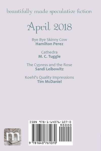 Beautifully made speculative fiction. The complete April 2018 issue of Metaphorosis magazine Bye Bye Skinny Cow - Hamilton Perez Cathedra - M. C. Tuggle The Cypress and the Rose - Sandi Leibowitz Koehl's Quality Impressions - Tim McDaniel