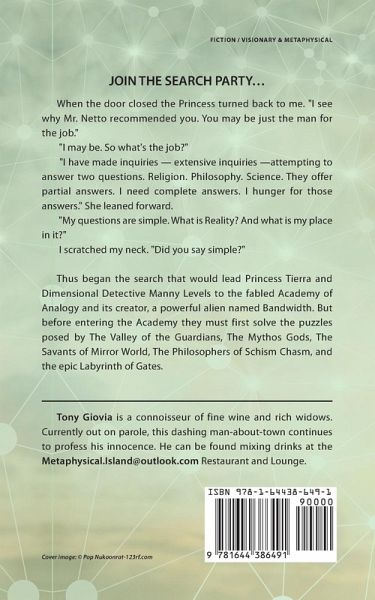 Manny Levels knew trouble when he saw it, and he saw it when Princess Tierra De Arcana sashayed into his Dimensional Thinking Detective Agency. Drawn by her beauty, he took the job when she asked him to find answers to two questions: "What is Reality? And what is my place in it?" The investigation forces Manny, Tierra and their robot guide Lowenbee Hold to solve fantastic puzzles posed by mythos gods, savants and philosophers. Conquering their final challenge, the vast Labyrinth of Gates, allows them to enter The Academy of Analogy where they are exposed to the transcendent insights of a creature named Bandwidth. Metaphysics addresses fundamental, thoughtful concerns, and the story engages these concerns by disguising them as fabulous obstacles in the path toward a greater awareness. In keeping with the dimensional underpinnings of the story, it is possible for science fiction fans to see the book as metaphysical sci-fi, and for literary novel seekers to see the book as magical (or more accurately, dimensional) realism. With humor and a sense of adventure, Metaphysical Island illuminates the one universal principle that unites myth, art, philosophy, spirituality and science. If you find the sample chapter entertaining and maybe a little bit intriguing, welcome to the search for Bandwidth.