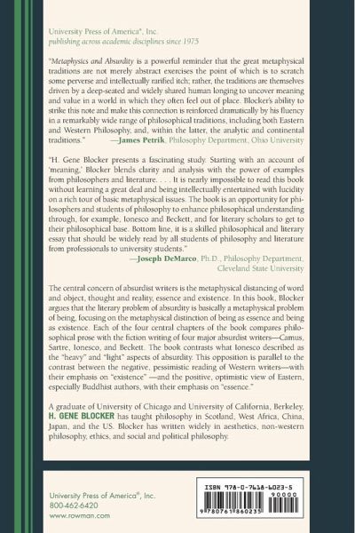 Blocker argues that the literary problem of absurdity is basically a metaphysical problem of being, focusing on the metaphysical distinction of being as essence and being as existence. This book compares philosophical prose with the fiction writing of four major absurdist writers--Camus, Sartre, Ionesco, and Beckett.