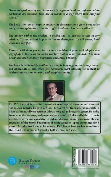 In today's fast moving world, generally people are stressed and particularly, the professionals. They are looking for a way where can they find some solace. The book is but an attempt to analyse the characters in given personality and give an explanation as to their origin in them. Lastly, a solution has been described but the author wants the readers that to achieve success in any mission that one undertakes, it is very important to possess a. intense desire; b. tanacity; c. will power; d. hard work; e. sacrifice, etc. It is then very easy to mould one's genes and adopt new way of life in keeping in today's social structure and respecting humanity, tolerance and social bonding. The book is deliberately written in a simple language so that every reader can appreciate it and when felt necessary, start utilising its content to achieve success, contentment and happiness in life.