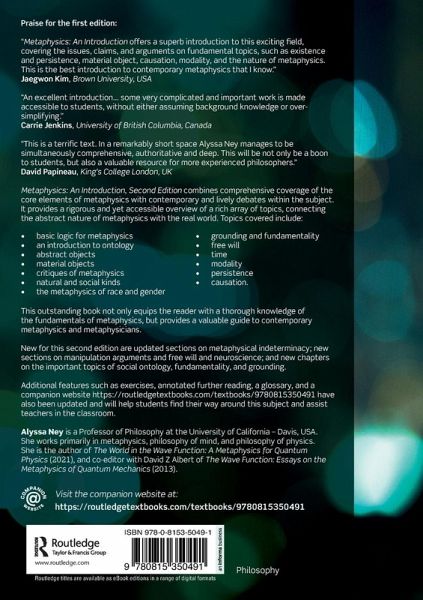 "This book will serve as an excellent introduction to contemporary metaphysics. The issues and arguments are well chosen and explained with a carefulness and rigor ideal for beginning students. The teaching-oriented materials, which include a helpful overview of elementary logic, are useful additions to Ney's expert discussion." - Sam Cowling, Denison University, USA