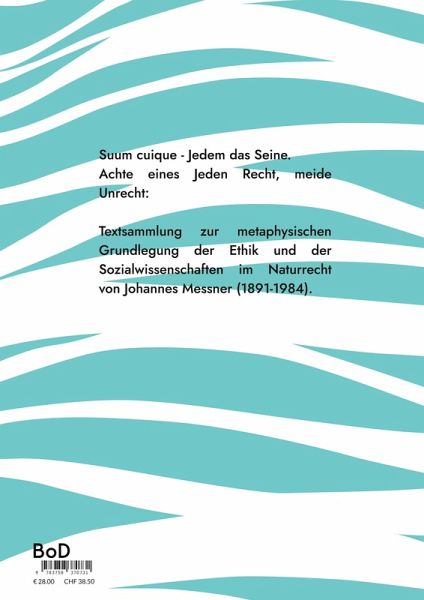 Suum cuique - Jedem das Seine.Achte eines Jeden Recht, meide Unrecht:Textsammlung zur metaphysischen Grundlegung der Ethik und der Sozialwissenschaften im Naturrecht von Johannes Messner (1891-1984).