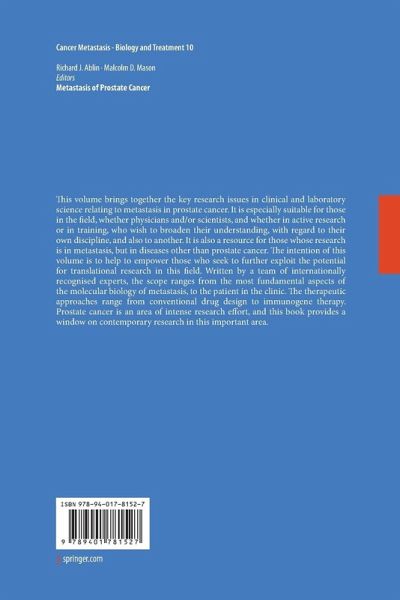 Without metastasis, prostate cancer would be both tolerable and treatable. The high incidence of indolent and organ confined disease is testament to this sweeping generalisation. Equally, if molecular markers of metastatic spread can be identified, then the choice of treatment for many patients would be easier and more radical, even curative. However, should prevention and treatment of the primary tumors prove difficult or impossible, then a knowledge of the phenotype of advanced metastatic tumors should allow us to target these lesions for destruction by conventional (drug based) or more innovative means such as gene and/or immunotherapy (1). The process of metastasis has been reviewed many times (e. g. , 2) and has been subdivided for ease of analysis into a number of discrete stages (see Figure 1). It has been suggested that at least 10 separate genetic 2. ECM degradation: migration MMP ; Integrin ; TIMP 3. Intravasation MMP TIMP 1. Cellular independence 4. Transport Adhesion loss and evasion (E Cadherin ) of host immune system MHCClass1 ICAM-1 to block T cell receptor 5. Arrest of movement: endothelial adhesion CD44 or switch 6. Extravasation to colonise new site 7. Proliferation at Laminin R distant site to form Integrin switch METASTASIS Figure 1. Stages in prostate cancer metastasis. Basic processes in tumor metastases are indicated in the boxes with some key changes in gene expression indicated at each stage by the solid arrows.