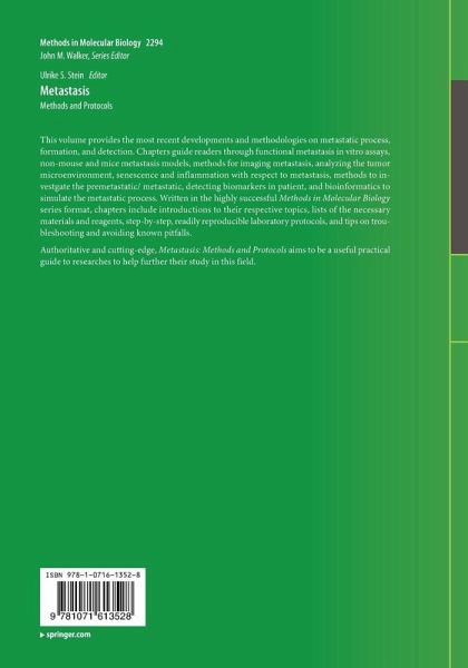 Cancer Cell Invasion and Metastasis in Zebrafish Models (Danio rerio).- The Chicken Egg Chorionallantois Membrane (CAM) model as an in vivo Method for the Investigation of the Invasion and Metastasis Cascade of Malignant Tumor Cells.- In vitro 3D Models of Tuneable Stiffness.- Patient-derived Xenografts from Solid Tumors (PDX) for Models of Metastasis.- Preparation and Culture of Organotypic Hippocampal Slices for the Analysis of Brain Metastasis and Primary Brain Tumor Growth.- Measuring Mechanical and Adhesive Properties of Single Cells Using an Atomic Force Microscope.- Analysing the Roles of Rho GTPases in Cancer Cell Adhesion to Endothelial Cells under Flow Conditions.- Probing Intravascular Adhesion and Extravasation Of Tumor Cells With Microfluidics.- Real-time Cell Migration Monitoring to Analyze Drug Synergism in the Scratch Assay using the IncuCyte system.- Measurement of Metabolites from Migrating Cells.- Matrix Degradation Assay to Measure the Ability of Tumor Cells to Degrade Extracellular Matrix.- Evaluation of Real-Time In Vitro Invasive Phenotypes.- Detection of Tumor Cell-induced Platelet Aggregation and Granule Secretion.- Fatty Acid Driven Polarization of Suppressive Bone Marrow-Derived Macrophages Including Metabolic and Functional Analysis.- From Whole Blood to Isolated Pro-Metastasis Immune Cells: An Ex-Vivo Approach to Isolate and Manipulate Immune Cells Contributing To Tumor Metastasis.- A Bioinformatic Pipeline to Identify Biomarkers for Metastasis Formation from RNA Sequencing Data.- Barcoding Technology for Multiplexed Analysis of Metastatic Ability In Vivo.- In Vivo Assessment of Metastatic Cell Potential in Prostate Cancer.- Isolation of Nucleoli for Characterization of Nucleolar Contents to Uncover Clues to Metastatic Progression.- Analyzing the Role of Proteases in Breast Cancer Progression and Metastasis using Primary Cells from Transgenic Oncomice.- Nuclear Medicine Imaging Procedures in Oncology.- From Operating Table to Laboratory Bench: The path Towards Metastasis Research from the Clinical Setting.