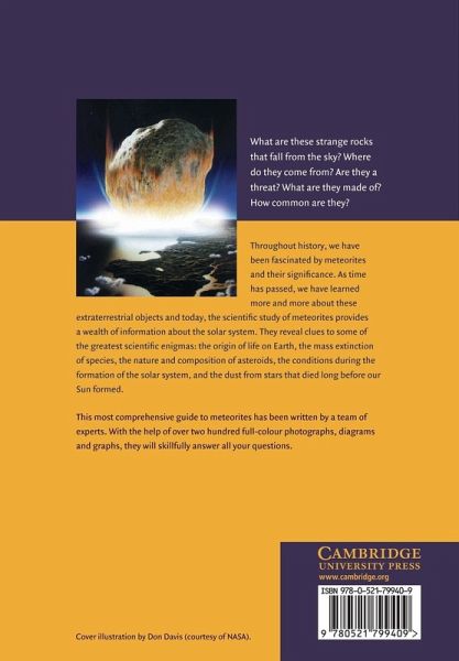 What are these strange rocks that fall from the sky? Where do they come from? Are they a threat? What are they made of? How common are they? Throughout history, we have been fascinated by meteorites and their significance. As time has passed, we have learned more and more about these extraterrestrial objects and today, the scientific study of meteorites provides a wealth of information about the solar system. They reveal clues to some of the greatest scientific enigmas: the origin of life on Earth, the mass extinction of species, the nature and composition of asteroids, the conditions during the formation of the solar system, and the dust from stars that died long before our Sun formed. This comprehensive guide to meteorites, first published in 2001, was written by a team of experts. With the help of over two hundred full-colour photographs, diagrams and graphs, they will skillfully answer all your questions.